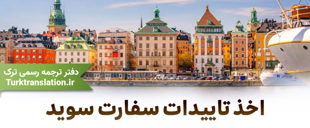 • سفارت سوئد در ایران، تایید مدارک را از طریق شرکت VFS Global انجام می‌دهد. باید از طریق وب‌سایت VFS Global وقت رزرو کنید. دفتر ترجمه رسمی ترک می‌تواند در رزرو وقت سریع‌تر کمک کند.